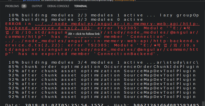 오류가 나는 파일 경로는 컴파일링에서 나타나는 오류에 해당 파일이 뜨니까 "alt+클릭"하여 해당 파일 오픈한다.(vs code작업시)